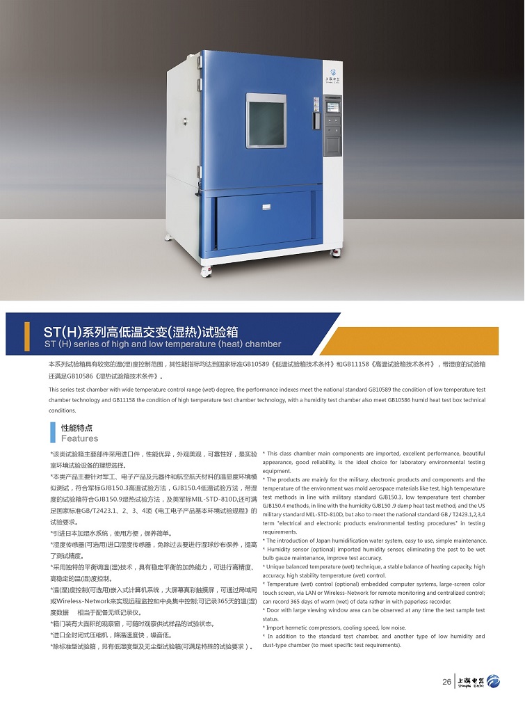 ·本类产品主要针对军工、电子产品及元器件和航空航天材料的温湿度环境模拟测试,符合军标GJB150.3高温试验方法,GJB150.4低温试验方法,带湿度的试验箱符合GJB150.9湿度试验方法,及美军表MIL-STD-810D,还可满足国家标准GB/T2423.1、2、3、4项《电工电子产品基本环境试验规程》的试验要求。