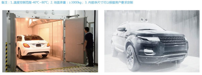 3.湿度控制测试 | 满足QC/T658-2000标准要求:38±1℃时,湿度为50%RH±5%,连续运行>1小时;(2)高温试验技术要求:+15∽60±1℃时,湿度为68±5%RH,连续云还行;温度为30℃时,汽车急速状态,整车最大散热量为25KW,最大相对湿度达到90±5%RH,连续运行>1小时;(3)试验中环境温湿度,可跟踪负荷变动,能在设定湿度内平衡控制温度变化速率速测试:由常温升温至+60℃最长时间:不大于3H;→常温降温至-40℃最长时间:不大于3H。 |